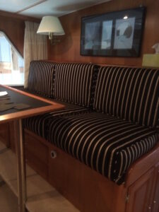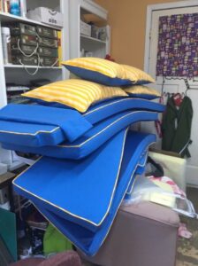Winter is a great time to refurbish marine cushions. Nancy offers a reduced price this time of year, when she is not as busy. Note; Nancy is not an upholsterer, she covers cushions that are loose and can be removed. Nancy can also arrange to replace foam inserts.